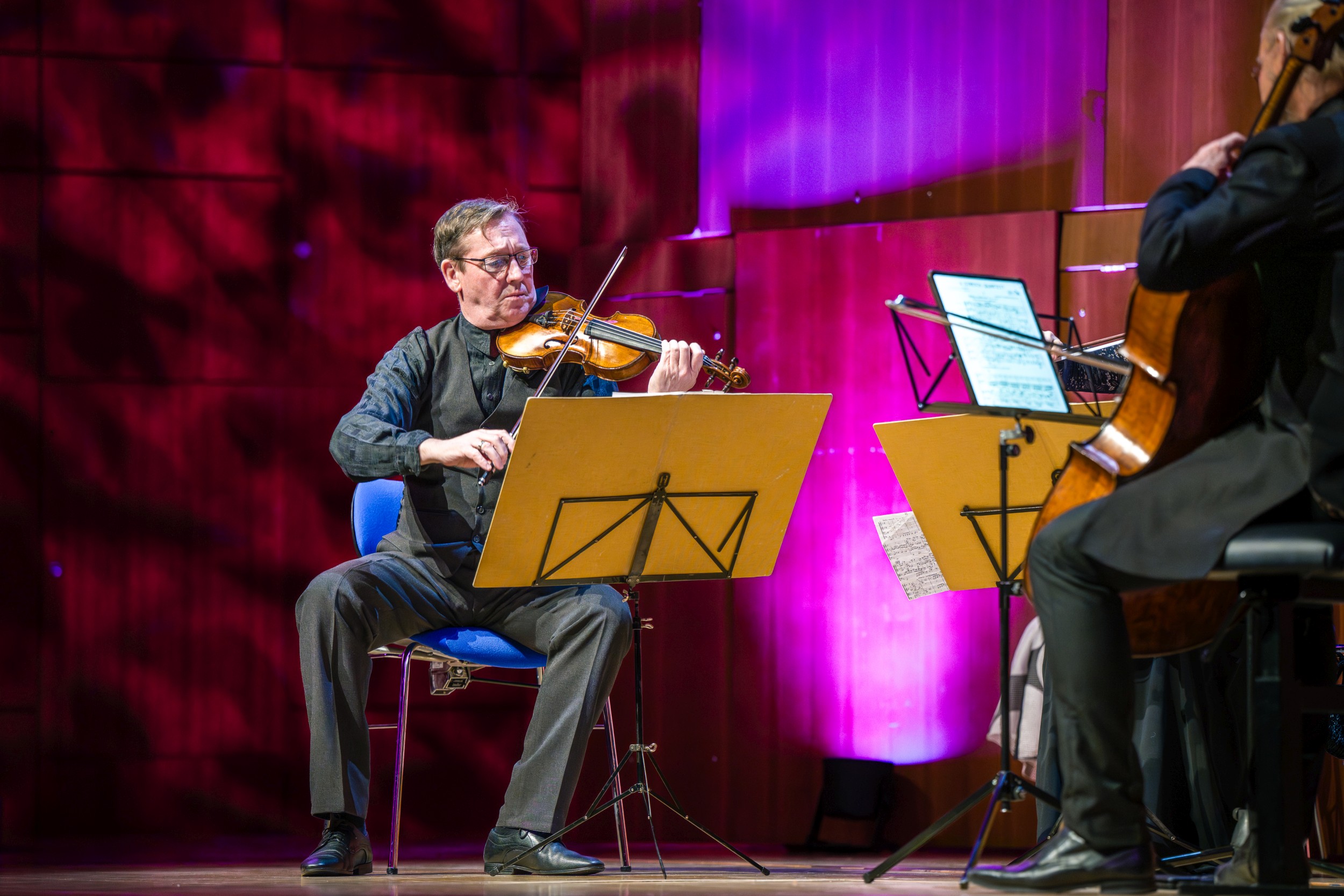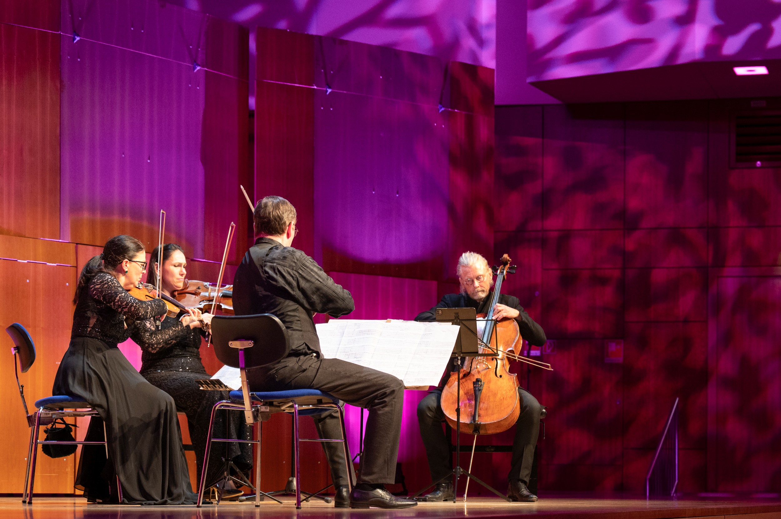 Im 4. Kammerkonzert „Dialoge“ am Sonntag, den 18. Januar 2026, erlebte das Publikum in der Philharmonie Mercatorhalle neben erstklassiger Kammermusik des renommierten Minguet Quartetts auch ein spannendes musikalisches Gespräch zwischen dem Quartett und der Sopranistin Sarah Maria Sun. Hier einige Fotoimpressionen zum Konzert.
